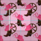 A graphic illustration of cowgirl hat and cowgirl boots on fabric.