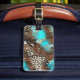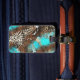 Texture and pattern of cowhide, leopard and turquoise great for travel with style