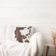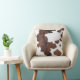 This square throw pillow showcases a stylish cowhide pattern with a mix of brown and white patches. The irregular brown shapes create an authentic, nature-inspired look reminiscent of traditional cowhide designs. With its rustic aesthetic, this pillow makes a perfect addition to farmhouse, western, or country-style décor, adding warmth and character to any space.