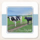 Protect your tabletops and other surfaces with these fun country style coasters featuring a photo of two cows in a pasture with a mountain view and a customizable monogram. Change the text to fit your gift giving needs.