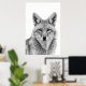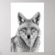 Coyote Head Portrait Black white Poster