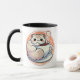 A fluffy, wide-eyed cat snuggles inside a warm cup of coffee, blending purrs with steam. This adorable illustration captures the perfect mix of comfort, cuteness, and caffeine.