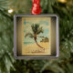 A cool vintage style Cozumel ornament featuring a palm tree on a sandy beach with blue sky and ocean.