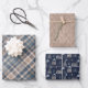 Cozy Blue and Tan Plaid Pine Cones and Home Wrapping Paper Sheet