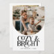 Elegant holiday card featuring a typography text that says "cozy & bright" below your arch shaped photo. Add a second photo on the back along with your message. Background is white.