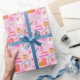 Cozy Bright Pink Snowman Christmas Ornament Wrapping Paper. Get ready to celebrate the season in style! This festive pink gift wrap sets the tone for a fun and cheerful holiday. The design showcases unexpected Christmas colours—pink, teal green, golden yellow, and coral, and snowman, mittens, ornaments, Christmas presents, Christma trees, and the words "ho, ho, ho". Whether you're hosting a cozy get-together with friends or a family celebration, this vibrant and playful wrapping paper will bring warmth and joy to your holiday season.