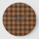 Cozy Brown Plaid Buffalo Print Pattern Large Clock