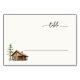 This wedding place card features a charming, minimalist design with a cozy wooden cabin illustration nestled beside an evergreen tree. The layout is clean and spacious, allowing the earthy tones of browns and greens to evoke a serene, natural atmosphere. Handwritten-style typography adds a personal touch, while the customizable placeholder invites easy customization for your event. Perfect for creating a warm, inviting ambiance at your wedding reception.