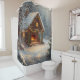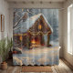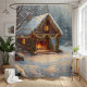 Embrace the joy of the holiday season with our exquisite Cozy Cabin Christmas Shower Curtain. This stunning design captures the quintessential charm of a winter wonderland, depicting a quaint, snow-covered stone cottage adorned with twinkling fairy lights and bright red bows. The highlight is the warm, inviting glow of a crackling fireplace, offering a sense of peace and relaxation that is perfect for any bathroom.