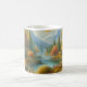 This breathtaking landscape painting captures the essence of autumn in all its splendour. A cozy cabin nestled amidst a vibrant forest of golden leaves invites you to escape the hustle and bustle of everyday life. A tranquil river meanders through the scene, reflecting the colourful foliage and creating a sense of peace and serenity. A small boat rests at the water's edge, beckoning you to explore the picturesque surroundings. Pumpkins and wildflowers add a touch of warmth and charm to this idyllic scene.