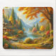 This breathtaking landscape painting captures the essence of autumn in all its splendour. A cozy cabin nestled amidst a vibrant forest of golden leaves invites you to escape the hustle and bustle of everyday life. A tranquil river meanders through the scene, reflecting the colourful foliage and creating a sense of peace and serenity. A small boat rests at the water's edge, beckoning you to explore the picturesque surroundings. Pumpkins and wildflowers add a touch of warmth and charm to this idyllic scene.