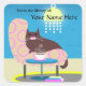 Cute bookplate has cat in an armchair with a cup of coffee and a small pile of books on the floor. Text says "From the library of:" and add your name.