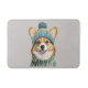 A heartwarming illustration of a cheerful corgi wearing a cozy knitted sweater and a matching blue and green beanie with a pom-pom. The pup’s bright eyes and joyful expression make this image perfect for winter vibes and pet lovers.