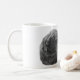 A calm retriever and a smug little kitty share one mellow moment. Gentle grayscale keeps the warmth in every sip.