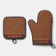 Cozy Fall Orange & Brown Buffalo Plaid Gingham Oven Mitt & Pot Holder Set