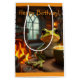 This gift bag features a frog having coffee by the fire.