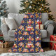 Add holiday cheer to your home with this cozy Christmas blanket, featuring a whimsical pattern of smiling gingerbread cookies, hot cocoa mugs, candy canes, stars, and festive treats against a deep navy background.