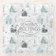 a down-home Christmas. Available in two boho colour palettes, this version features shades of teal, steel blue and soft beige. We've provided optional 'Season's Greetings' text and you can personalize this festive Christmas glass coaster with your name(s) and date. Search ID985 to see all the coordinating products with this adorable Christmas pattern.