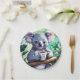 A cheerful koala enjoys a cup of coffee amidst lush jungle scenery, bringing the warmth and serenity of a cozy morning in nature's embrace.