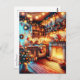 Wishing you a cozy old-fashioned Christmas and a Happy New Year. Backside text of postcard can be personalized, so you can add your name if you want or change the greeting. Cute vintage kitchen full of holiday decorations, holiday wreaths and Christmas lights.