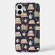 A whimsical pattern featuring pastel-toned stacked books on rustic wooden shelves, accented with cozy details such as vintage teapots, potted plants with trailing vines, and delicate pastries. The deep navy background enhances the soft pastel hues, creating a delightful contrast. The organized yet playful composition is perfect for stationery like notebooks, planners, and journals, celebrating the warmth of reading and simple comforts.