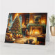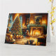 A display of a cozy living room with a fireplace decorated for the Christmas holiday.