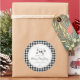 Modern simplistic cozy nature, Christmas stickers. Watercolor branch adorned with pinecones and decorative star ornaments, chic typography design with trendy plaid pattern border.