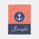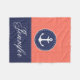 Cozy Nautical Coral Blue Anchor Custom Text Fleece Blanket