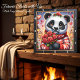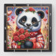 This heartwarming square wall clock features a beautiful digital illustration of a cuddly panda bear enjoying a snowy Valentine evening. The panda is dressed in a cozy red and white knit sweater adorned with heart patterns and wears a delicate crown of red roses. Clutching a lush bouquet of deep crimson roses, the panda is set against a charming winter village backdrop with glowing lanterns, snow-covered cottages, and a starry twilight sky filled with floating hearts. The artwork is encased in a modern black wood-grain frame with bold white numeric markers for easy timekeeping. This functional piece of home decor is an ideal gift for panda enthusiasts, Valentine Day, or as a sweet accent for a nursery or living room. Its detailed textures and warm, romantic atmosphere provide a joyful focal point for any interior space.