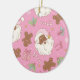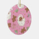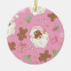 Cozy Pink Pastel Black Santa & Bow Christmas Ceramic Ornament