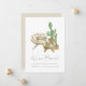 Cozy boho new address announcement features a neutral home decor illustration with simple cactus potted plants and modern hand lettering.
