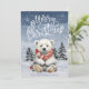 Share the joy of Christmas with our Cozy Polar Bear with Red Scarf Christmas Card. This enchanting card showcases a lovable polar bear, beautifully depicted in watercolor, wearing a festive red scarf. It's a wonderful choice for winter lovers, fans of cute Arctic animals, and anyone who appreciates the charm of snowy holidays. Add your family name and a personalized message for a truly unique touch.