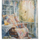 This cozy porch scene captures a timeless summer moment, featuring a vintage wooden rocking chair draped with a colourful patchwork quilt under delicate hanging wisteria. Sunlight dances across the weathered blue porch, where a glass of fresh lemonade rests on a lace-covered table, and a butterfly floats lazily in the golden air. The gentle interplay of light and shadow evokes a peaceful, nostalgic atmosphere perfect for those who cherish slow living and countryside charm. Ideal for bringing warmth and serenity to any space, this piece invites you to imagine yourself curled up with a good book, savouring the quiet beauty of nature and home. The soft watercolor style adds an ethereal, romantic touch, making it a lovely accent for farmhouse, cottagecore, or shabby chic decor. AI generated artwork.