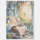 This cozy porch scene captures a timeless summer moment, featuring a vintage wooden rocking chair draped with a colourful patchwork quilt under delicate hanging wisteria. Sunlight dances across the weathered blue porch, where a glass of fresh lemonade rests on a lace-covered table, and a butterfly floats lazily in the golden air. The gentle interplay of light and shadow evokes a peaceful, nostalgic atmosphere perfect for those who cherish slow living and countryside charm. Ideal for bringing warmth and serenity to any space, this piece invites you to imagine yourself curled up with a good book, savouring the quiet beauty of nature and home. The soft watercolor style adds an ethereal, romantic touch, making it a lovely accent for farmhouse, cottagecore, or shabby chic decor. AI generated artwork.