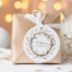 A soft, hand-painted Christmas wreath adorned with beige ornaments, pine sprigs, and a muted red bow, creating a serene, rustic holiday vibe. Perfect for sealing holiday cards, packaging festive gifts, or adding a charming accent to your winter celebrations. This design blends Nordic calm with nostalgic detail for a timeless seasonal touch.