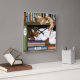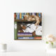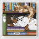 Cozy Sleeping Cats Bookshelf Illustration Cute Square Wall Clock