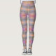 Leggings in an abstract pattern with pink, aqua, pale golds, purple and red.