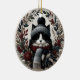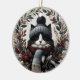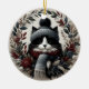 Bring warmth and whimsy to your holiday décor with this charming ornament featuring a stylish black-and-white cat dressed in a cozy Nordic-inspired winter hat and scarf. Surrounded by an elegant wreath of muted berries, leaves, and flowers, this design is perfect for cat lovers who appreciate a touch of winter magic. Whether displayed on your Christmas tree or gifted to a fellow feline enthusiast, this ornament is a delightful way to celebrate the season with a touch of personality and charm.