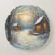 Cozy winter home scenery round pillow
