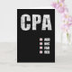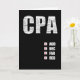 Customize this congratulations card for  someone who has passed the CPA test. You can check off the parts they have passed if they pass one or more, and finally when the whole test is passed, marked it all as completed!   This Black and white card stands out, with the initials CPA filled with congratulations. The 4 parts are Auditing (AUD), Business Environment & Concepts (BEC). Financial Accounting & Reporting (FAR). and Regulation (REG).