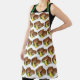 All-over-print apron features an original marker illustration of spicy crabcakes with a wedge of lemon.