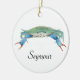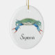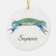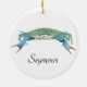 A watercolor painting of a lovely blue claw crab adorns this customizable ornament!