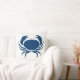 part of the ocean themed decor CRAB on teal blue pillow on one side and teal and white strip on back.