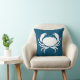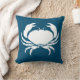 part of the ocean themed decor CRAB WHITE on blue pillow on one side and white stripes on back. Design by Sandy Closs blue green teal aqua turquoise water shellfish crabs lobsters seafood