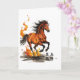 A vivid, high-energy illustration: a powerful chestnut horse bolts forward, every muscle taut and lit with warm highlights. A mix of orange and red, and the mane and tail are rendered like streaks of flame, tossing wildly and amplifying the sense of speed.
