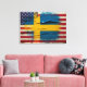Fantastic canvas print featuring an American Swedish fusion with the Swedish flag merging with the star spangled banner, painted on wood with chipped paint.