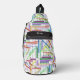 This personalized printed sling bag has a crafting sewing word search pattern with a vintage news paper printing texture in lots of bright colours. You can make the pattern on this sling bag larger or smaller. Great gift for anyone that loves crafting, sewing or word search games.