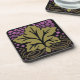 Set of 6 cork-backed coasters features Leslie Sigal Javorek's adaptation of a classic American Craftsman pattern, w/a large single mossy green grape leaf, umber shaded vines, surrounded by masses of grapes in purple orchid gradients, all set on black for dramatic flair. Perfect for your next Wine Tasting Party!