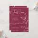 Cranberry Hand Drawn Botanical Just Love Wedding Invitation. Cranberry Hand Drawn Botanical Just Love Wedding Invitation, Celebrate your special day with this elegant 'Nothing Fancy Just Love' wedding invitation. Featuring a delicate hand-drawn botanical illustration in crisp white against a rich cranberry background, this design exudes natural charm and sophistication. The simple yet heartfelt phrase sets a relaxed tone for your union, perfect for couples who value a relaxed or casual event. This chic invitation is ideal for a romantic, bohemian, or garden-themed wedding. Let this beautiful botanical foliage suite be the first glimpse into your joyous marriage celebration.