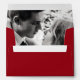 Display a portrait (vertical) photo inside your envelopes. When opened, the cranberry colour envelop reveals a photo of the couple. The back of the envelope features the sender's address on the flap. The option to change the text's font is available.